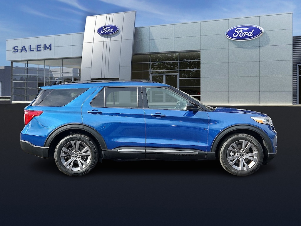 "Clean CARFAX. Certified. Atlas Blue Metallic 2022 Ford Explorer XLT 4WD 10-Speed Automatic 2.3L EcoBoost I-4 *ONE OWNER* *CLEAN HISTORY REPORT* ***PLEASE CALL 603-898-9766*** 4WD Acoustic-Laminated Front Side Windows ActiveX Captain's Chairs Equipment Group 202A Evasive Steering Assist Ford Co-Pilot360 Assist+ Heated leather seats Heated Steering Wheel Intelligent Adaptive Cruise Control LED Fog Lamps Power Liftgate Remote Start System SecuriCode Keyless Entry Keypad Speed Sign Recognition SYNC 3/Apple CarPlay/Android Auto Twin Panel Moonroof Voice-Activated Touchscreen Navigation System Wheels: 20""10-Spoke Carbonized Gray-Painted XLT Sport Appearance Package.At Salem Ford you win! Odometer is 10594 miles below market average! 20/27 City/Highway MPGFord Gold Certified Details: * and 22000 FordPass Rewards Points to use toward first two maintenance visits * Transferable Warranty * Limited Warranty: 12 Month/12000 Mile (whichever comes first) after new car warranty expires or from certified purchase date * 172 Point Inspection * Roadside Assistance * Warranty Deductible: $100 * Vehicle History * Powertrain Limited Warranty: 84 Month/100000 Mile (whichever comes first) from original in-service dateWe make the car buying process very simple by displaying the lowest price on the window. We price our vehicles more aggressively than anyone else in the area. For that reason we're proud to display it on every vehicle's window. We believe there is more to buying a vehicle than worrying about the price. For that reason Key Auto has simplified that process for our customers. When we price a vehicle we take the following into consideration: 1) market conditions 2) what the area dealers are selling them for 3) Kelly Blue Book* retail. This way when you leave a Key Auto Dealership you're confident you've received the absolute best deal."