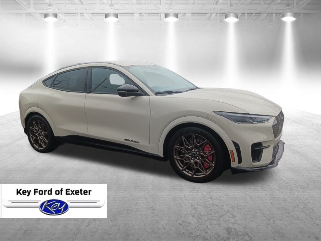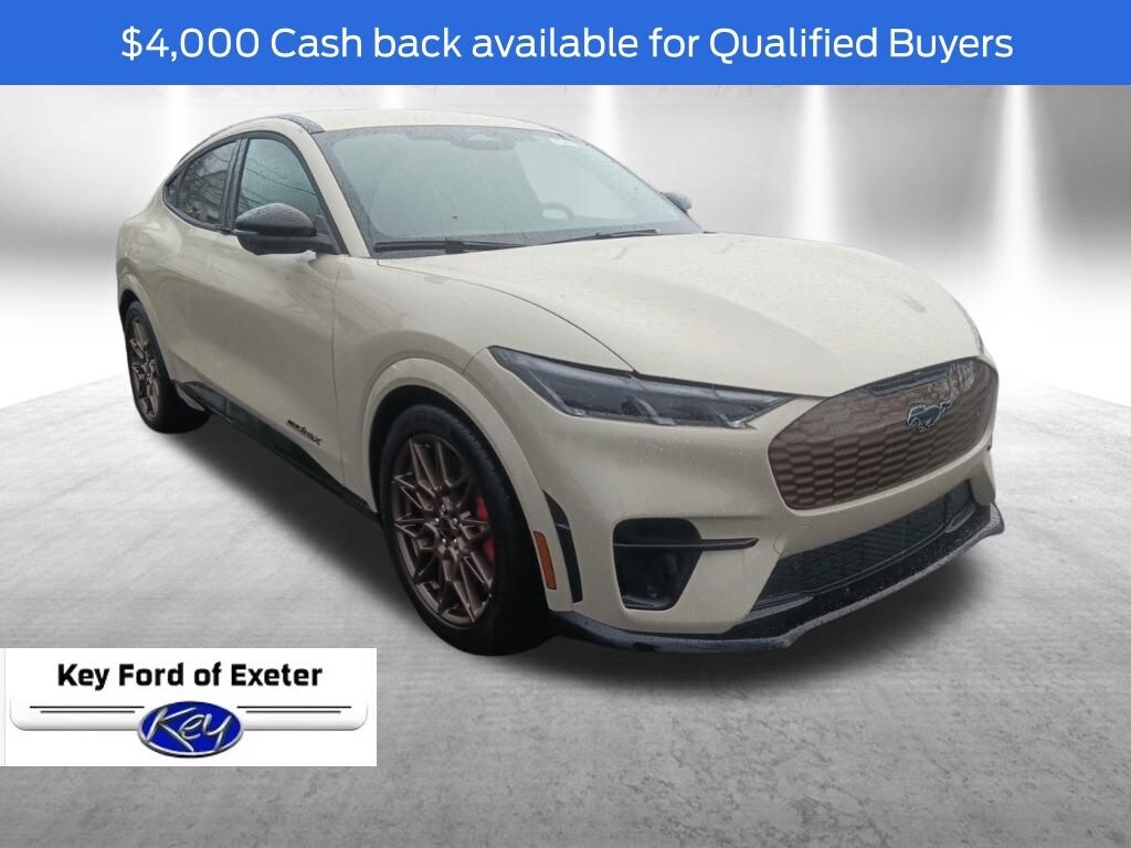 KEY FORD OF EXETER is proud to present you with another True Market Priced Vehicle. This 2025 Ford Mustang Mach-E GT is loaded with the following Factory Options: Bronze Appearance Package (Bronze Mesh Front Grille Shield, Mach-E 4X Door Badges & Rear GT Badge, and Wheels: 20" Sinister Bronze Painted), Equipment Group 400A Standard Package, 10 Speakers, 4-Wheel Disc Brakes, ABS brakes, Adaptive suspension, Air Conditioning, Alloy wheels, AM/FM radio: SiriusXM with 360L, Apple CarPlay/Android Auto, Auto High-beam Headlights, Auto-dimming Rear-View mirror, Automatic temperature control, Brake assist, Bumpers: body-color, Compass, Delay-off headlights, Driver door bin, Driver vanity mirror, Dual front impact airbags, Dual front side impact airbags, Electronic Stability Control, Emergency communication system: 911 Assist, Exterior Parking Camera Rear, Four wheel independent suspension, Front anti-roll bar, Front Bucket Seats, Front Center Armrest, Front dual zone A/C, Front reading lights, Fully automatic headlights, Garage door transmitter, Heated door mirrors, Heated front seats, Heated Perforated ActiveX Performance Seats, Heated steering wheel, Hood & Decklid Stripe/Door Graphics Delete, Illuminated entry, Internet access capable: FordPass Connect, Knee airbag, Low tire pressure warning, Memory seat, Navigation system: Connected Navigation, Occupant sensing airbag, Outside temperature display, Overhead airbag, Overhead console, Panic alarm, Passenger door bin, Passenger vanity mirror, Power door mirrors, Power driver seat, Power Liftgate, Power passenger seat, Power steering, Power windows, Radio data system, Radio: B&O Sound System by Bang & Olufsen, Rain sensing wipers, Rear anti-roll bar, Rear seat center armrest, Rear side impact airbag, Rear window defroster, Rear window wiper, Remote keyless entry, Security system, SiriusXM w/360L, Speed control, Speed-sensing steering, Speed-Sensitive Wipers, Split folding rear seat, Spoiler, Steering wheel mounted audio controls, SYNC 4A w/Enhanced Voice Recognition, Telescoping steering wheel, Tilt steering wheel, Traction control, Trip computer, Turn signal indicator mirrors, Variably intermittent wipers, and Wheels: 20" Monochromatic High Gloss Black-Painted!! Price includes: $4000 - Retail Customer Cash. Exp. 03/31/2026