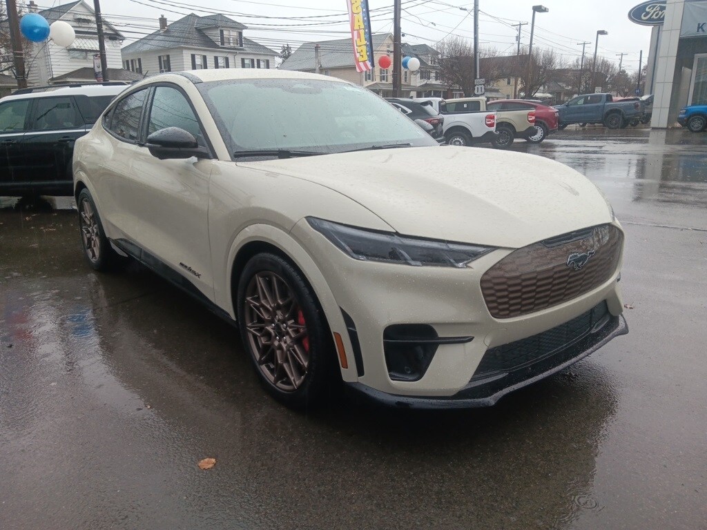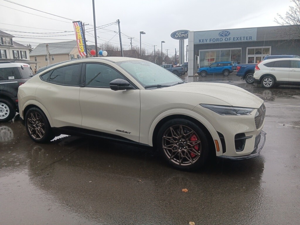 KEY FORD OF EXETER is proud to present you with another True Market Priced Vehicle. This 2025 Ford Mustang Mach-E GT is loaded with the following Factory Options: Bronze Appearance Package (Bronze Mesh Front Grille Shield, Mach-E 4X Door Badges & Rear GT Badge, and Wheels: 20" Sinister Bronze Painted), Equipment Group 400A Standard Package, 10 Speakers, 4-Wheel Disc Brakes, ABS brakes, Adaptive suspension, Air Conditioning, Alloy wheels, AM/FM radio: SiriusXM with 360L, Apple CarPlay/Android Auto, Auto High-beam Headlights, Auto-dimming Rear-View mirror, Automatic temperature control, Brake assist, Bumpers: body-color, Compass, Delay-off headlights, Driver door bin, Driver vanity mirror, Dual front impact airbags, Dual front side impact airbags, Electronic Stability Control, Emergency communication system: 911 Assist, Exterior Parking Camera Rear, Four wheel independent suspension, Front anti-roll bar, Front Bucket Seats, Front Center Armrest, Front dual zone A/C, Front reading lights, Fully automatic headlights, Garage door transmitter, Heated door mirrors, Heated front seats, Heated Perforated ActiveX Performance Seats, Heated steering wheel, Hood & Decklid Stripe/Door Graphics Delete, Illuminated entry, Internet access capable: FordPass Connect, Knee airbag, Low tire pressure warning, Memory seat, Navigation system: Connected Navigation, Occupant sensing airbag, Outside temperature display, Overhead airbag, Overhead console, Panic alarm, Passenger door bin, Passenger vanity mirror, Power door mirrors, Power driver seat, Power Liftgate, Power passenger seat, Power steering, Power windows, Radio data system, Radio: B&O Sound System by Bang & Olufsen, Rain sensing wipers, Rear anti-roll bar, Rear seat center armrest, Rear side impact airbag, Rear window defroster, Rear window wiper, Remote keyless entry, Security system, SiriusXM w/360L, Speed control, Speed-sensing steering, Speed-Sensitive Wipers, Split folding rear seat, Spoiler, Steering wheel mounted audio controls, SYNC 4A w/Enhanced Voice Recognition, Telescoping steering wheel, Tilt steering wheel, Traction control, Trip computer, Turn signal indicator mirrors, Variably intermittent wipers, and Wheels: 20" Monochromatic High Gloss Black-Painted!! Price includes: $1000 - Final Days Mega Bonus Cash. Exp. 01/02/2026 $2000 - Retail Bonus Cash. Exp. 01/05/2026 $3000 - Retail Customer Cash. Exp. 01/05/2026