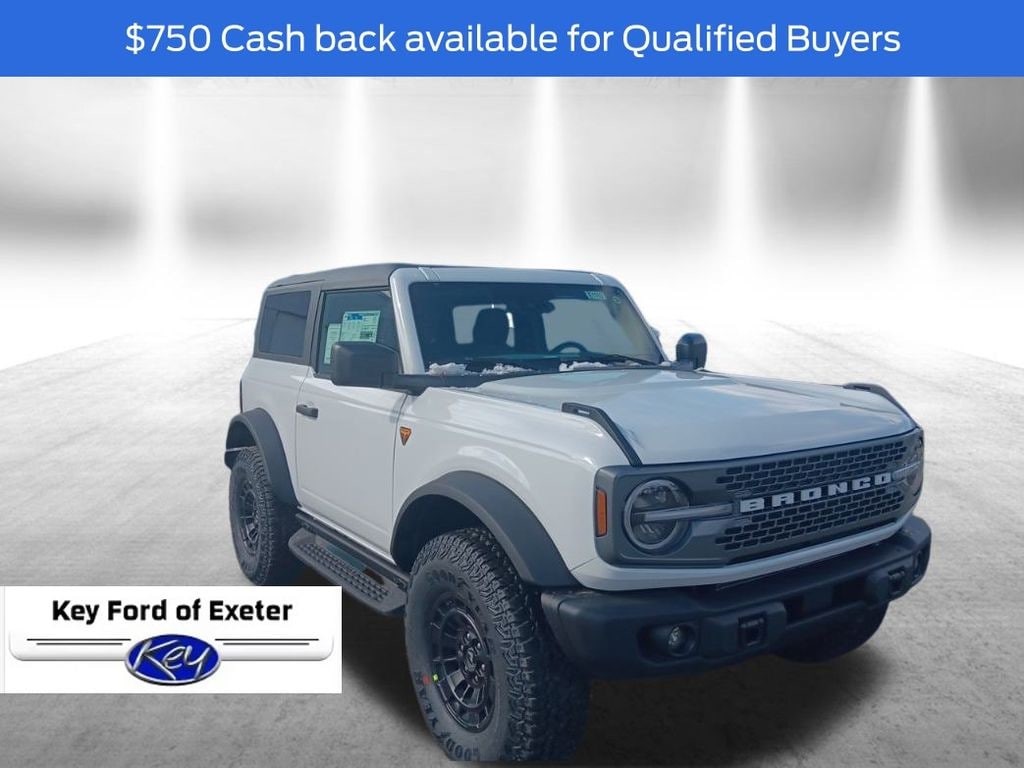 KEY FORD OF EXETER is proud to present you with another True Market Priced Vehicle. This 2026 Ford Bronco Badlands is loaded with the following Factory Options: Equipment Group 332A Mid Package (2-Door Intelligent Access with Lock/Unlock, AM/FM Stereo, Ambient Footwell Lighting, Connected Navigation, Driver and Front Passenger Illuminated Sliding Visor Vanity Mirrors, Dual Smart Charging USB Ports, Dual-Zone Electronic Automatic Temperature Control, Front Row Heated Seats, Heated Steering Wheel, Marine Grade Vinyl Heated Bucket Seats, Pro Power Onboard - 400W, Rear Parking Sensors, SiriusXM with 360L, SYNC 4, and Wheels: 17" Carbonized Gray-Painted Aluminum), Ford Connectivity Package (1-Year Included), Sasquatch Package (Front Stabilizer Disconnect, High Clearance Suspension, Position-Sensitive Bilstein Shock Absorbers, and Wheels: 17" Matte Black Alloy), 4-Wheel Disc Brakes, 7 Speakers, ABS brakes, Air Conditioning, Alloy wheels, AM/FM radio: SiriusXM with 360L, Auto High-Beam Headlamps, Auto High-beam Headlights, Auto-dimming Rear-View mirror, BLIS Blind Spot Information System, Brake assist, Compass, Convertible HardTop, Convertible roof lining, Delay-off headlights, Driver door bin, Driver vanity mirror, Dual front impact airbags, Dual front side impact airbags, Electronic Stability Control, Emergency communication system: 911 Assist, Engine Block Heater, Exterior Parking Camera Rear, Front anti-roll bar, Front Bucket Seats, Front Center Armrest, Front fog lights, Front reading lights, Front wheel independent suspension, Fully automatic headlights, Glass rear window, Heated door mirrors, Illuminated entry, Integrated roll-over protection, Lane-Keeping System, Leather Shift Knob, Low tire pressure warning, Occupant sensing airbag, Outside temperature display, Overhead airbag, Overhead console, Panic alarm, Passenger door bin, Passenger vanity mirror, Power door mirrors, Power steering, Power windows, Pre-Collision Assist with Automatic Emergency Braking, Radio data system, Raptor-Style Running Board, Rear window defroster, Rear window wiper, Rear-View Camera, Remote keyless entry, Security system, Speed control, Split folding rear seat, Steering wheel mounted audio controls, Tachometer, Telescoping steering wheel, Tilt steering wheel, Traction control, Trip computer, Variably intermittent wipers, and Voltmeter!! Price includes: $750 - Retail Customer Cash. Exp. 04/30/2026