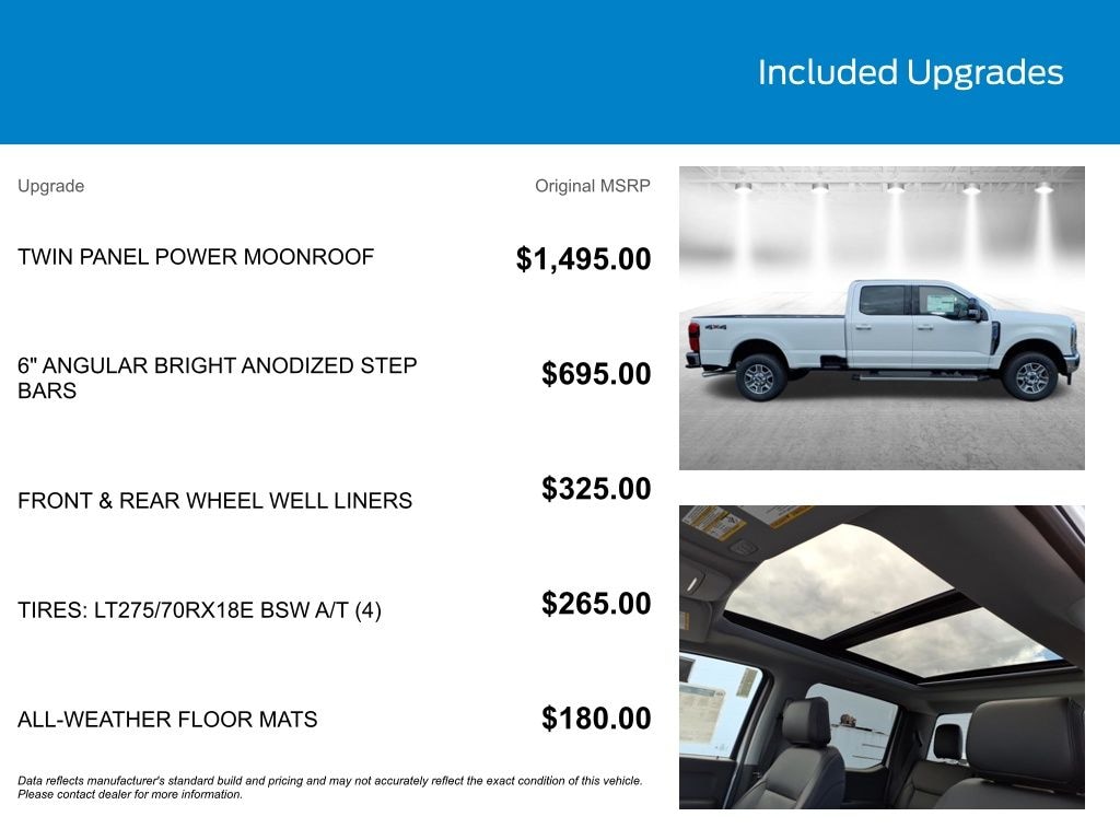 KEY FORD OF EXETER is proud to present you with another True Market Priced Vehicle. This 2026 Ford F-250SD Lariat is loaded with the following Factory Options: 4WD Ford Connectivity Package (1-Year Included), Internet access capable: 5G Modem - Ford Connectivity Package, Order Code 608A (3.73 Axle Ratio, Flow-Through Console, and Front ActiveX Trimmed 40/Console/40 Seats), 4WD, 4-Wheel Disc Brakes, 6" Angular Bright Anodized Step Bars, 8 Speakers, ABS brakes, Adjustable pedals, Air Conditioning, All-Weather Floor Mats, Alloy wheels, AM/FM radio: SiriusXM with 360L, Auto High-beam Headlights, Auto-dimming Rear-View mirror, Automatic temperature control, Brake assist, Bumpers: chrome, Compass, Delay-off headlights, Driver door bin, Driver vanity mirror, Dual front impact airbags, Dual front side impact airbags, Electronic Stability Control, Emergency communication system: SYNC 4 911 Assist, Front anti-roll bar, Front Bucket Seats, Front Center Armrest, Front dual zone A/C, Front fog lights, Front reading lights, Fully automatic headlights, Garage door transmitter, Heated door mirrors, Heated front seats, Heated rear seats, Heated steering wheel, Illuminated entry, Low tire pressure warning, Memory seat, Navigation system: Connected Navigation, Outside temperature display, Overhead airbag, Overhead console, Panic alarm, Passenger door bin, Passenger vanity mirror, Pedal memory, Power door mirrors, Power driver seat, Power passenger seat, Power steering, Power windows, Privacy Glass, Rain sensing wipers, Rear Parking Sensors, Rear reading lights, Rear seat center armrest, Rear step bumper, Rear window defroster, Remote keyless entry, Security system, Speed control, Split folding rear seat, Steering wheel mounted audio controls, Tachometer, Telescoping steering wheel, Tilt steering wheel, Traction control, Trip computer, Turn signal indicator mirrors, Twin Panel Power Moonroof, Variably intermittent wipers, and Ventilated front seats!!