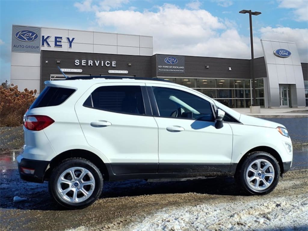 Key Ford of Rockland is proud to present you with another True Market Priced Pre-Owned Vehicle. Transparent Pricing Of $ 13476 !! This 2020 Ford EcoSport SE is loaded with the following Factory Options: SE Convenience Package (110V/150W AC Power Outlet, 7 Speakers, Ambient Lighting, BLIS Blind Spot Information System, and SYNC 3 Communications & Entertainment System w/47B), 4-Wheel Disc Brakes, ABS brakes, Power moonroof, SiriusXM Radio, Speed-sensing steering, and Traction control SE Convenience Package (110V/150W AC Power Outlet, 7 Speakers, Ambient Lighting, BLIS Blind Spot Information System, SYNC 3 Communications & Entertainment System w/47B, and SiriusXM Traffic & Travel Link), Equipment Group 200A, 4-Wheel Disc Brakes, ABS brakes, Power moonroof, SiriusXM Radio, Speed-sensing steering, Traction control, 3.51 Axle Ratio, 6 Speakers, Air Conditioning, Alloy wheels, AM/FM radio: SiriusXM, AppLink/Apple CarPlay and Android Auto, Automatic temperature control, Brake assist, Bumpers: body-color, Compass, Delay-off headlights, Driver door bin, Driver vanity mirror, Dual front impact airbags, Dual front side impact airbags, Electronic Stability Control, Emergency communication system: SYNC 3 911 Assist, Exterior Parking Camera Rear, Front anti-roll bar, Front Bucket Seats, Front Center Armrest, Front fog lights, Front reading lights, Front wheel independent suspension, Fully automatic headlights, Heated front seats, HEATED Leather steering wheel, Illuminated entry, Knee airbag, Leather Shift Knob, Low tire pressure warning, Occupant sensing airbag, Outside temperature display, Overhead airbag, Overhead console, Panic alarm, Passenger door bin, Passenger vanity mirror, Power door mirrors, Power driver seat, Power steering, Power windows, Radio data system, Radio: AM/FM Stereo w/MP3 Capable, Rear anti-roll bar, Rear Parking Sensors, Rear seat center armrest, Rear side impact airbag, Rear window defroster, Rear window wiper, Remote keyless entry, Roof rack: rails only, Speed control, Split folding rear seat, Steering wheel mounted audio controls, SYNC 3 Communications & Entertainment System, Tachometer, Telescoping steering wheel, Tilt steering wheel, Tire Inflator & Sealant Kit, Trip computer, Turn signal indicator mirrors, Unique Cloth Heated Front Bucket Seats, Variably intermittent wipers, and Wheels: 16" Shadow Silver-Painted Aluminum!!
