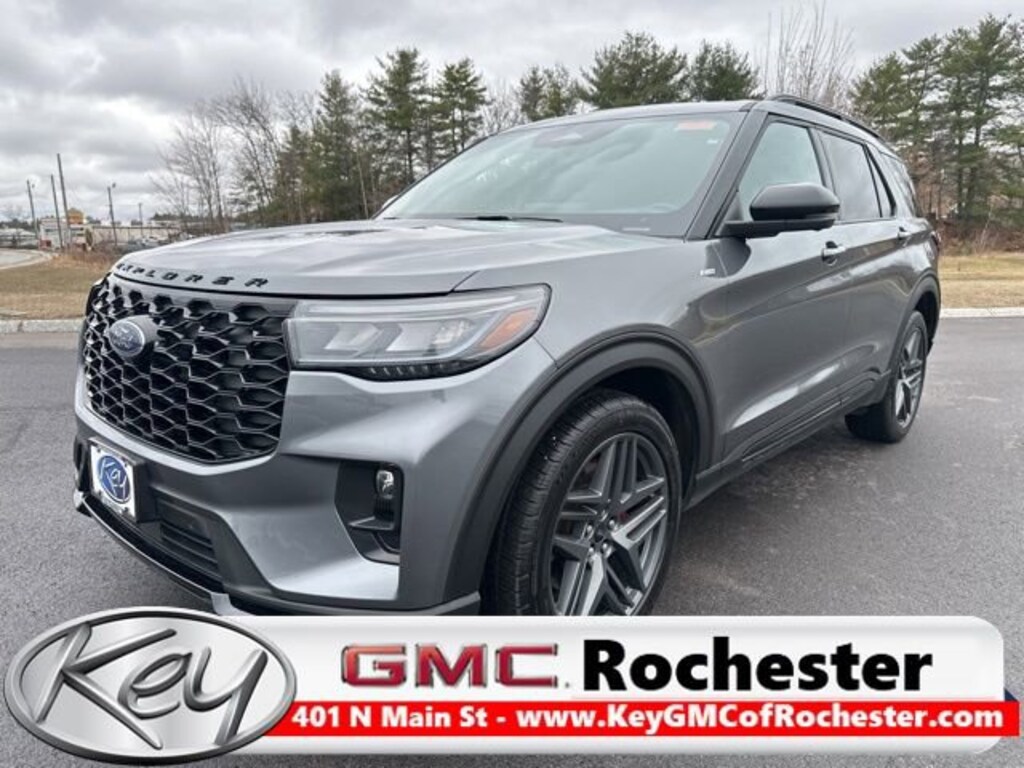 Key GMC Of Rochester is proud to present you with another True Market Priced Pre-Owned Vehicle. This 2025 Ford Explorer ST-Line is loaded with the following Factory Options: 4WD Equipment Group 300A Standard Package, Premium Package (110V/150W AC Power Outlet, 2nd Row Heated Seats, Ambient Lighting, Auto-Dimming Interior Rear-View Mirror, Memory Driver's Seat, Power-Folding Sideview Mirrors w/Autofold, Rain-Sensing Wipers (Front Only), and Wireless Charging Pad), ST-Line Street Pack (Performance Brakes, Red Painted Perf Front & Rear Brake Calipers, and Wheels: 21 Magnetite-Painted Aluminum), 4WD, 10 Speakers, 2nd Row Captain's Chairs w/E-Z Entry & Armrest, 3.58 Non-Limited Slip Rear Axle, 3rd row seats: bench, 4-Wheel Disc Brakes, ABS brakes, Air Conditioning, Alloy wheels, AM/FM radio: SiriusXM with 360L, Apple CarPlay/Android Auto, Auto High-beam Headlights, Automatic temperature control, Brake assist, Bumpers: body-color, Compass, Delay-off headlights, Driver door bin, Driver vanity mirror, Dual front impact airbags, Dual front side impact airbags, Electronic Stability Control, Emergency communication system: 911 Assist, Exterior Parking Camera Rear, Four wheel independent suspension, Front & 2nd Rows Floor Liners w/Carpet Floor Mats, Front anti-roll bar, Front Bucket Seats, Front Center Armrest, Front dual zone A/C, Front fog lights, Front License Plate Bracket, Front reading lights, Fully automatic headlights, Garage door transmitter, Heated door mirrors, Heated front seats, Heated steering wheel, Heated Unique Cloth Captain's Chairs, Illuminated entry, Internet access capable: FordPass Connect 5G, Knee airbag, Leather steering wheel, Low tire pressure warning, Navigation System, Occupant sensing airbag, Outside temperature display, Overhead airbag, Overhead console, Panic alarm, Panoramic Vista Roof w/Power Shade, Passenger door bin, Passenger vanity mirror, Power door mirrors, Power driver seat, Power Liftgate, Power passenger seat, Power steering, Power windows, Radio: B&O Sound System by Bang & Olufsen, Rear air conditioning, Rear anti-roll bar, Rear reading lights, Rear window defroster, Rear window wiper, Remote keyless entry, Security system, Speed control, Speed-sensing steering, Speed-Sensitive Wipers, Split folding rear seat, Spoiler, Steering wheel mounted audio controls, Tachometer, Telescoping steering wheel, Tilt steering wheel, Traction control, Trip computer, Variably intermittent wipers, and Wheels: 20 Ebony-Painted Machined Aluminum!!