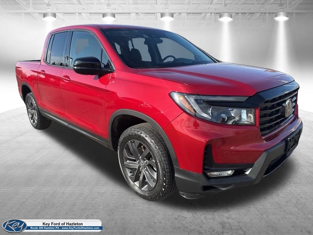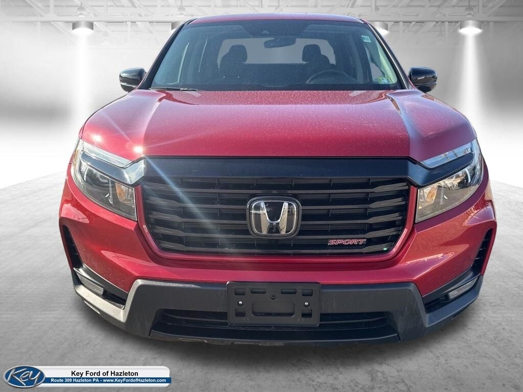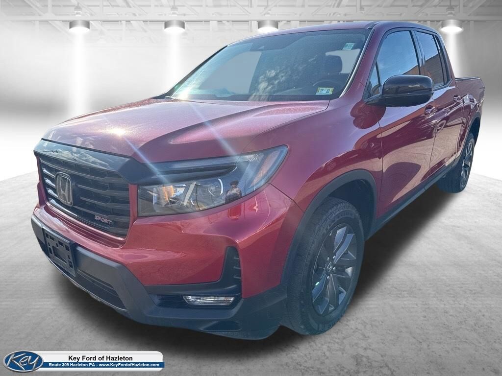 KEY FORD OF HAZLETON is proud to present you with another True Market Priced Pre-Owned Vehicle. Transparent Pricing Of $ 29970 !! This 2023 Honda Ridgeline Sport is loaded with the following Factory Options: Black Cloth Black Cloth, 4-Wheel Disc Brakes, 4.33 Axle Ratio, 7 Speakers, ABS brakes, Air Conditioning, Alloy wheels, AM/FM radio, Apple CarPlay/Android Auto, Automatic temperature control, Bluetooth® Hands-Free Link, Brake assist, Bumpers: body-color, Cloth Seat Trim, Delay-off headlights, Driver door bin, Driver vanity mirror, Driver's Seat Mounted Armrest, Dual front impact airbags, Dual front side impact airbags, Electronic Stability Control, Exterior Parking Camera Rear, Four wheel independent suspension, Front anti-roll bar, Front Bucket Seats, Front dual zone A/C, Front fog lights, Front reading lights, Fully automatic headlights, Garage door transmitter: HomeLink, Illuminated entry, Low tire pressure warning, Occupant sensing airbag, Outside temperature display, Overhead airbag, Overhead console, Panic alarm, Passenger door bin, Passenger seat mounted armrest, Passenger vanity mirror, Power door mirrors, Power steering, Power windows, Radio data system, Radio: 215-Watt Audio System w/7 Speakers, Rear air conditioning, Rear anti-roll bar, Rear reading lights, Rear seat center armrest, Rear step bumper, Rear window defroster, Remote keyless entry, Security system, Speed control, Speed-sensing steering, Split folding rear seat, Steering wheel mounted audio controls, Tachometer, Telescoping steering wheel, Tilt steering wheel, Traction control, Trip computer, Variably intermittent wipers, and Wheels: 18" Shark Gray Alloy!!