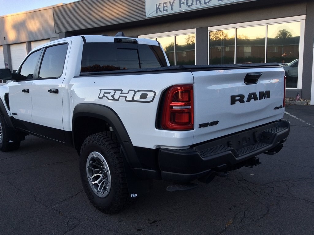 Call Key Ford of Exeter at 272-260-3194 to schedule a test drive today! This 1500 RHO is nicely equipped with Bed Utility Group (Exterior 115V AC Outlet, MOPAR 4 Adjustable Cargo Tie-Down Hooks, MOPAR Deployable Bed Step, and MOPAR Spray In Bedliner), Quick Order Package 22Y RHO, RHO Level 1 Equipment Group (12-Way/1-Way Trailer Connector, 14.4" Touchscreen Display, 240 Amp Alternator, 4G LTE Wi-Fi Hot Spot, Apple CarPlay, Connected Travel & Traffic Services, Connectivity - US/Canada, Driver Power Seat Back Massage, Driver Seat Memory, Driver/Passenger Wrapped Assist Handles, Drowsy Driver Detection, Dual Wireless Charging Pad, Evasive Steer Assist, Exterior Mirrors w/Memory, Front Passenger Interactive Display, Front Passenger Power Seat Back Massage, Full Length Premium Upgraded Floor Console, Google Android Auto, GPS Navigation, Hands-Free Active Driving Assist System, harman/kardon 19 Speaker Premium Sound, HD Radio, Heads-Up Display, Heated Second Row Seats, Integrated Voice Command w/Bluetooth, Intersection Collision Assist System, Leather/Carbon Flat-Bottom Steering Wheel, LED CHMSL Lamp, Luxury Front Door Trim Panel, Power Adjustable Pedals w/Memory, Power Tailgate, Premium Wrapped I/P Bezel, Radio: Uconnect 5 Nav w/14.4" Display, Radio/Driver Seat/Mirrors/Pedals Memory, Rain Sensitive Windshield Wipers, Real Carbon Fiber Interior Accents, Rear 60/40 Folding Split Recline Seat, Smartphone As A Key Capable, Surround View Camera System, Traffic Sign Recognition, USB Host Flip, Ventilated Front Seats, and Ventilated Rear Seats), 10 Speakers, 3.92 Rear Axle Ratio, 4-Wheel Disc Brakes, ABS brakes, Adaptive suspension, Adjustable pedals, Air Conditioning, Alloy wheels, AM/FM radio: SiriusXM with 360L, Apple CarPlay/Android Auto, Auto High-beam Headlights, Auto Power-Folding Mirrors, Auto-dimming door mirrors, Auto-Dimming Exterior Driver Mirror, Auto-dimming Rear-View mirror, Automatic temperature control, Brake assist, Compass, Delay-off headlights, Dome Dual LED Reading Lamp, Driver door bin, Driver vanity mirror, Dual front impact airbags, Dual front side impact airbags, Dual-Pane Panoramic Sunroof, Electronic Stability Control, Exterior Mirrors Courtesy Lamps, Exterior Mirrors w/Heating Element, Exterior Mirrors w/Supplemental Signals, Flareside Box, Front anti-roll bar, Front Bucket Seats, Front Center Armrest w/Storage, Front dual zone A/C, Front fog lights, Front reading lights, Front wheel independent suspension, Fully automatic headlights, Garage door transmitter, Heated door mirrors, Heated front seats, Heated steering wheel, Illuminated entry, Leather Shift Knob, Leather steering wheel, Leather Trimmed Bucket Seats, Low tire pressure warning, Manufacturer's Statement of Origin, MOPAR RHO Exterior Graphics, MOPAR RHO Hood Graphics, Navigation System, Occupant sensing airbag, Outside temperature display, Overhead airbag, Overhead console, Panic alarm, ParkView Rear Back-Up Camera, Passenger door bin, Passenger vanity mirror, Power door mirrors, Power driver seat, Power passenger seat, Power steering, Power windows, Radio data system, Radio: Uconnect 5 Nav w/12.0" Display, Rear reading lights, Rear seat center armrest, Rear step bumper, Rear window defroster, Red Interior Accents, Remote keyless entry, Security system, Speed control, Split folding rear seat, Sport steering wheel, Steering wheel mounted audio controls, Tachometer, Telescoping steering wheel, Tilt steering wheel, Traction control, Trip computer, Turn signal indicator mirrors, Variably intermittent wipers, Voltmeter, Wheels: 18" x 9" Bead-Lock Aluminum, and Wheels: 18" x 9" Black Paint/Polish Aluminum.